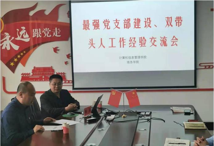 刘伟博士是教育部第二批高校“双带头人”教师党支部书记工作室负责人、自治区高校优秀基层党组织负责人、永利官网“双带头人”党支部书记工作室负责人。讲座中,刘伟博士介绍了我院教工一支部“双带头人”教师党支部书记工作室申报、“最强党支部”建设、特色党建活动、各级各类党建项目研究等,强调支部党建工作要突出思政意识、项目意识、精品意识、平台意识,并要紧紧围绕学院的中心工作,在突出专业本色的基础上抓好党建工作。刘伟博士的讲座得到了财经大学与会两个学院的党委班子成员一致赞可。商务学院贸易经济系党支部书记王雪瑞、计算机信息管理学院软件工程专业学生党支部书记贾原博,分别就“最强党支部”强化政治功能建设、特色主题党日活动、党建与专业建设双促进等介绍各自的经验和做法。