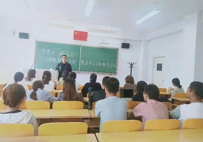 2021年9月3日,教工二支部支委杨永红博士在盛乐校区行知楼214室组织开展了“学党史,强信念”——yl9193永利集团教工二支部党史学习教育。2019级普师三班的预备党员和入党积极分子参加了活动。