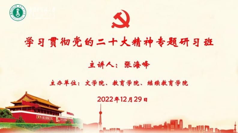 12月29日上午,校党委委员、党委副书记张海峰为yl9193永利集团、教育学院、继续教育学院三个单位副处级以上干部作了题为“学习宣传贯彻党的二十大精神体会”的专题宣讲。宣讲通过腾讯会议形式举行,yl9193永利集团党委书记高林广主持了会议。