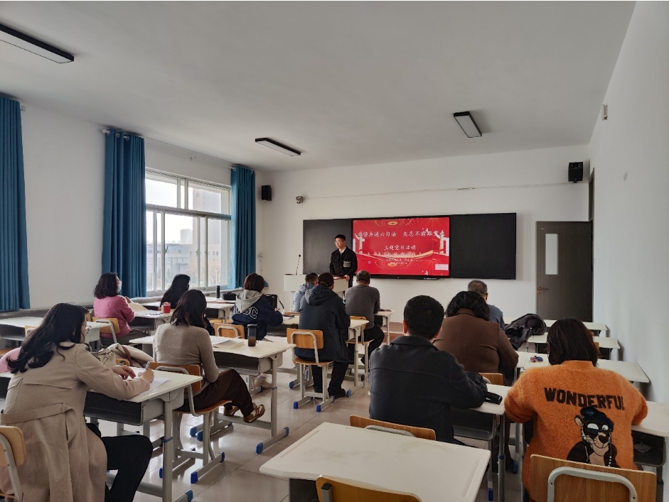 党日活动分两个阶段进行,第一阶段为书记讲党课活动。支部书记赵玉龙结合党的二十大精神,讲授了习近平总书记关于教育的重要论述,他指出,培养什么人,是教育的首要问题。不管什么时候,教育要始终坚持为党育人的初心不能忘、为国育才的立场不能改。他强调,作为教师,我们要教育引导学生树立共产主义远大理想和中国特色社会主义共同理想,使学生们认识到,只有社会主义才能救中国,只有中国特色社会主义才能发展中国,才能实现中华民族伟大复兴。