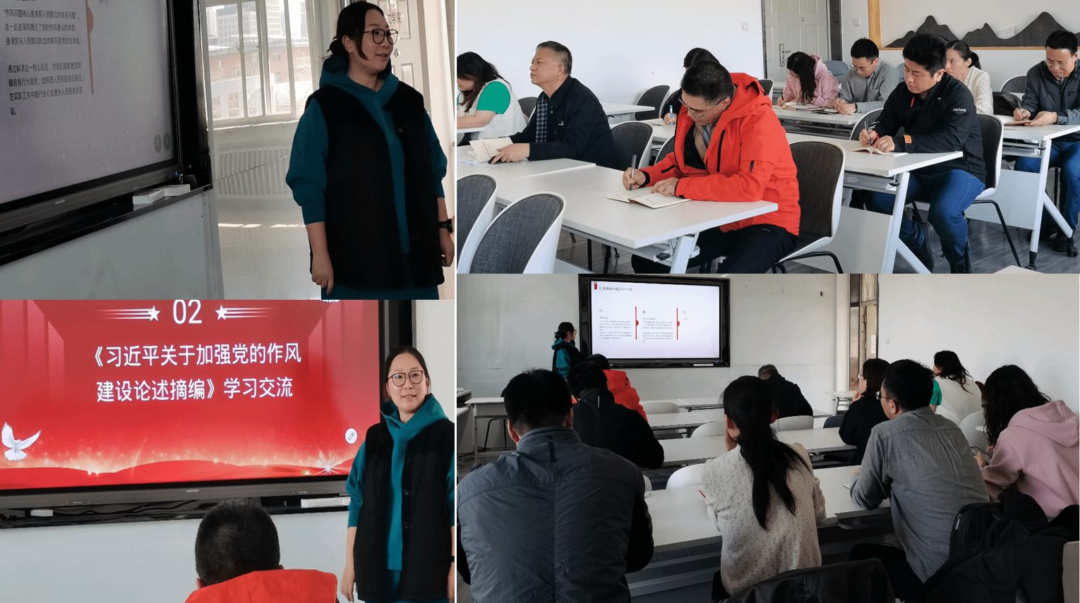 2025年4月24日,在赛罕校区文史楼432,yl9193永利集团教工第二党支部开展了《习近平关于加强党的作风建设论述摘编》学习研讨,本次集中学习由刘婕老师领学。集体学习后,党支部书记黎秀娥组织了深入而又热烈的研讨,大家的研讨从习近平总书记关于加强党的作风建设的重要论述,逐渐延伸到教育教学中存在的问题,以及相关的应对措施。取得了边学、边查、边改的良好学习教育效果。