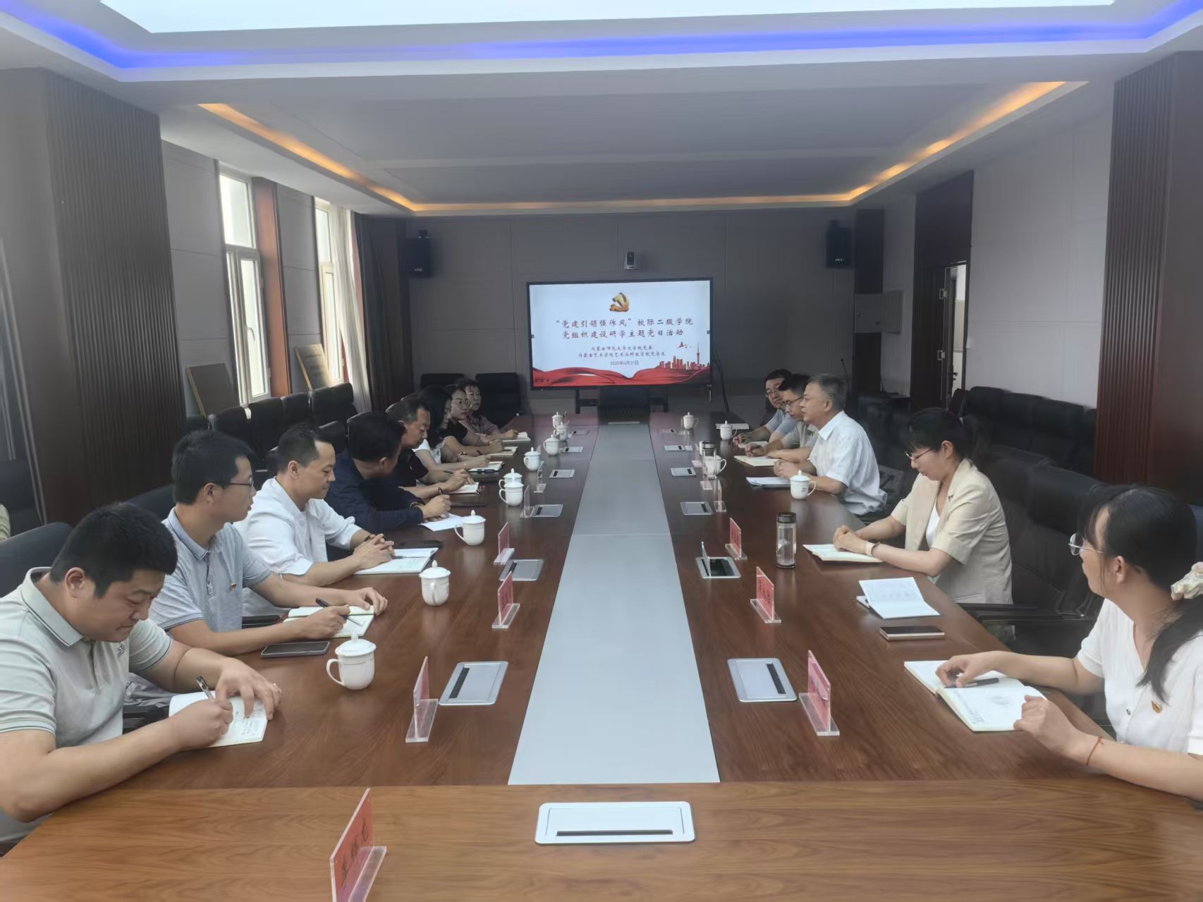 6月27日下午,yl9193永利集团党委和内蒙古艺术学院艺术与科技学院党总支开展“党建引领强作风”校际二级学院党组织建设研学主题党日活动。yl9193永利集团党委书记韩彦斌及各党支部书记、综合办公室主任,艺术学院艺术与科技学院党总支书记姚建东,党总支副书记、副院长段建华及各党支部书记、环节干部、教师代表、学生代表等参加活动。活动在永利官网盛乐校区学院楼yl9193永利集团进行。