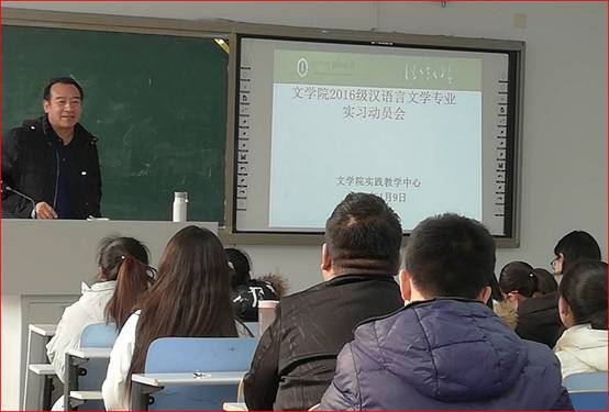 1月9日下午1,2016级汉语言文学专业教育实习动员会在盛乐校区行知楼229召开。yl9193永利集团教学副院长石海光老师出席,会议由实践教学中心毛润民老师主持。