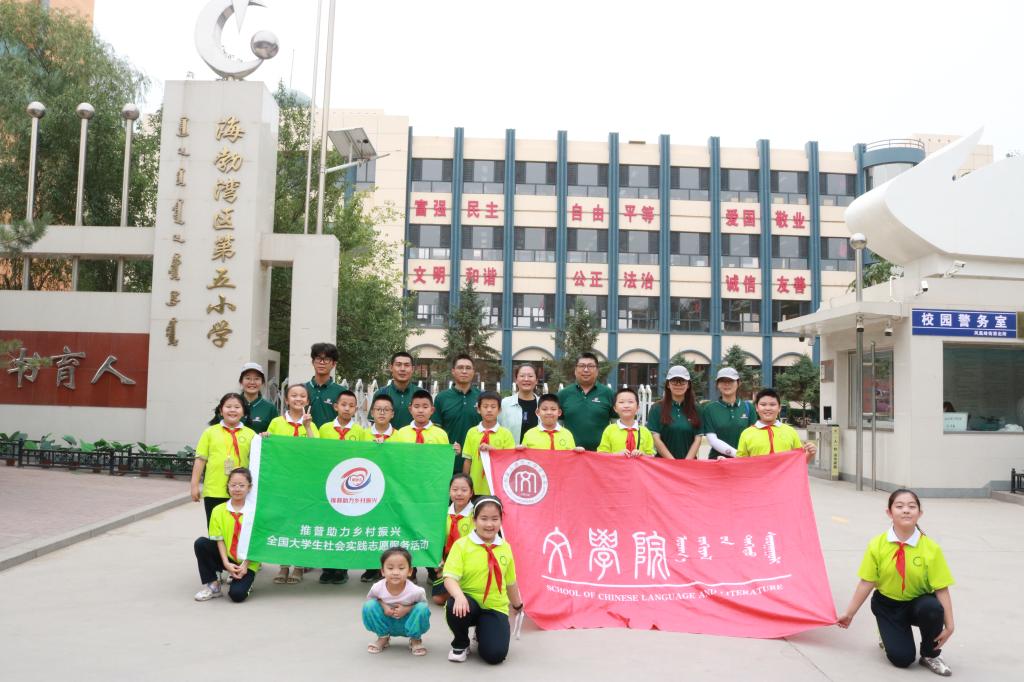 在推普助力乡村振兴的道路上,单靠一个人的力量难以走远,只有大家携手前进、戮力同心,才能调动发展的内生动力,将振兴之路走得更稳。在本次推普活动过程中,我院实践队以“扣好推普的第一颗扣子”为主题,深入走进了乌海市海勃湾区第五小学开展推普活动,队员们采取了示范朗诵、语言训练、即兴演讲等方式对该小学学生进行了针对性的语言训练,帮助培训对象排除发音障碍,突破发音难点,掌握并巩固常用字词的标准发音,并对改进和提高中小学生的普通话水平、规范使用通用语言文字提出了一些建议和方法。为学生宣讲说好普通话的重要意义,为乡村普通话推广助力,为乡村振兴赋能。