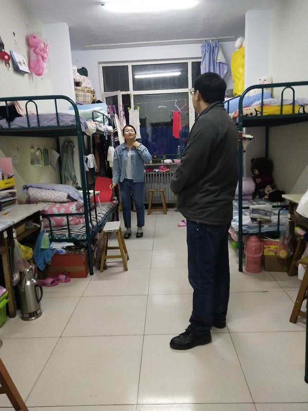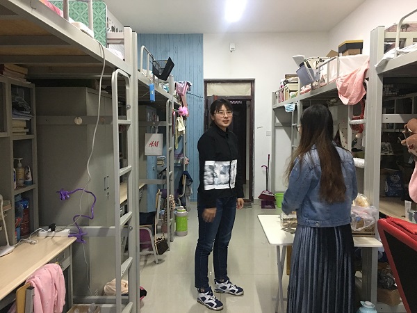 走访学生宿舍过程中,辅导员对寝室卫生及用电安全做了仔细检查,询问同学们对于宿舍生活方面的建议和意见,叮嘱学生提高安全防范意识,创建良好的宿舍风貌。