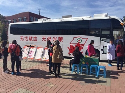 10月11日上午, 我院联合内蒙古血液中心发起“大学生义务献血”公益活动。