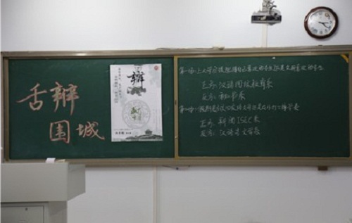 11月12日下午,我院在行知楼304教室举办“舌辩围城”辩论赛决赛。2015级汉语言文学班和秘书班代表队参加了本场比赛。我院团总支书记牛海龙老师担任嘉宾评委。