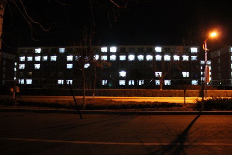 20:26分开始,我院11号楼女生宿舍有将近一半的宿舍开始熄灯,20:32分,整栋楼里属于我院的宿舍全部关闭了电灯。