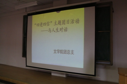 4月20日下午,我院在行知楼225教室开展了“四进四信——与人生对话”主题团日活动。此次活动以“了解社会走进团,做好共青团员,贯彻四进四信”为主题,团总支干部带领各班共青团骨干以幻灯片的形式,回顾了中国社会历史,号召大家牢固树立对党的科学理论的信仰,积极传播青春正能量。