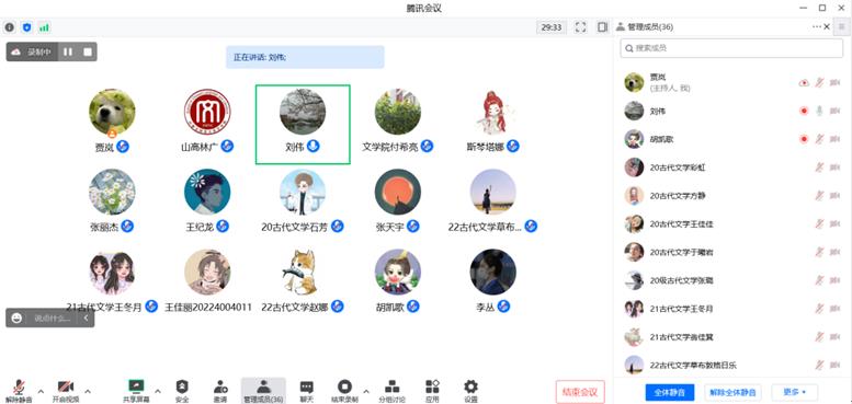 独学而无友,则孤陋而寡闻。勤学而交流,则博学而睿智。2022年11月18日上午,我院中国古代文学学位点成功举办了主题为“研途有你,书香抗疫”的2022年度古代文学学术沙龙。古代文学硕士点的高林广、陆有富、石海光、付希亮、刘伟、张丽杰6位导师和高国庆、赵玉龙、马奥远等古代文学课教师以及学位点的全体研究生共40余名师生参加了本次学术沙龙活动。受新冠疫情影响,本次学术沙龙采取线上方式进行。