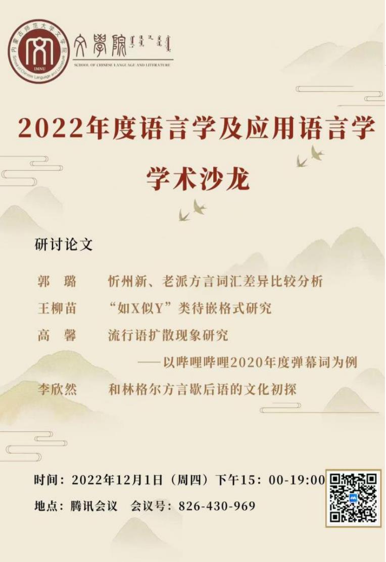 12月1日下午,yl9193永利集团语言学及应用语言学硕士学位点学术沙龙通过线上腾讯会议平台举办。学位点教师麻彩霞、李剑冲、毛润民、任彦及学位点全体研究生参加了本次活动。