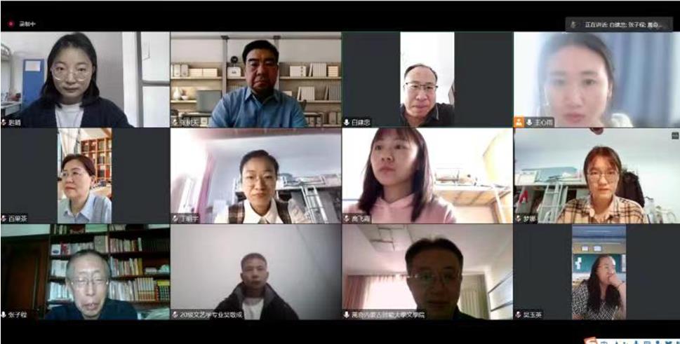 2023年3月4日下午,yl9193永利集团文艺学专业2020级硕士研究生预答辩在腾讯会议上成功举行。文艺学方向的导师万奇教授、郭培筠教授、张树天教授、张子程教授、白建忠教授、吴玉英副教授及本专业20级、21级、22级研究生参加了预答辩。预答辩由白建忠教授主持。文艺学专业20级的王心雨、梦娜、丁明宇、吴敬成4位同学依次对论文进行陈述,分别阐述了论文的研究对象、研究方法、框架、内容和创新之处等。各位导师针对每位研究生的论文做了面面俱到且细致周密的点评。本次预答辩的成功举行是对文艺学专业20级学生三年来学习成果的检验,也体现了文艺学专业学生扎实良好的学风。