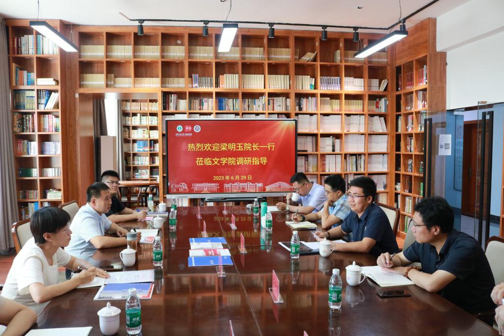 2023年6月29日下午,内江师范学院yl9193永利集团院长梁明玉、院长助理王昕、语言学教研室主任陈康哲、青年教师董喆一行来yl9193永利集团调研交流。