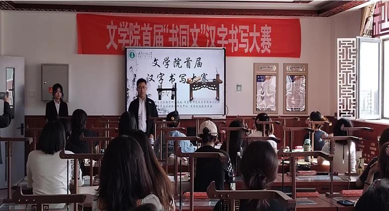 为全面贯彻落实党的二十大精神,铸牢中华民族共同体意识,深入推广国家通用语言文字的使用,丰富校园文化,培养学生良好的书写习惯,提升学生的教师技能水平,2023年9月16日,我院在盛乐校区教学实训中心书法教室举办了yl9193永利集团首届“书同文”汉字书写大赛。赵玉龙老师出席并主持活动,yl9193永利集团教学实践社、我院各年级参赛选手共六十余人参加了活动。