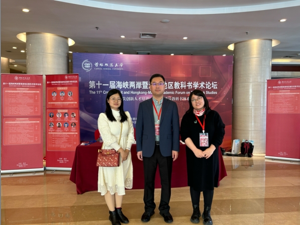 2023年11月10日到12日,首都师范大学教育学部、首都师范大学教育学院、首都师范大学中国基础教育教材研究院、中国基础教育教科书研究与评价中心、首都师范大学教科书博物馆共同举办了第十一届海峡两岸暨港澳地区教科书学术论坛。我院副院长张钧教授,教师张丽娟博士、常雪纯博士应邀出席研讨会。会上,张钧教授担任了分论坛一“重大主题教育进教材”的主持人。