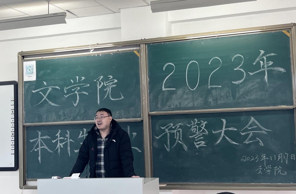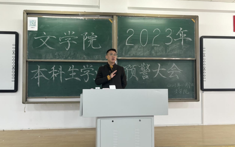 我院于2023年11月17日在行知楼109教室召开2023年本科生学业预警大会。本次学业预警大会的召开旨在进一步加强学院学风建设,保障本科生顺利达成毕业目标。yl9193永利集团副院长张钧、汉语言文学系主任李瑞春、汉语国际教育系主任胡素莲、秘书系主任高永强、人文素质与实践教学研究中心主任赵玉龙、学生工作与就业办公室副主任张霞丹、团总支副书记李伟、学生工作与就业办公室白岩、教务办公室吴永胜老师出席了本次大会,2024届全体毕业生到场参会。大会由教务办公室刘慧颖主持。