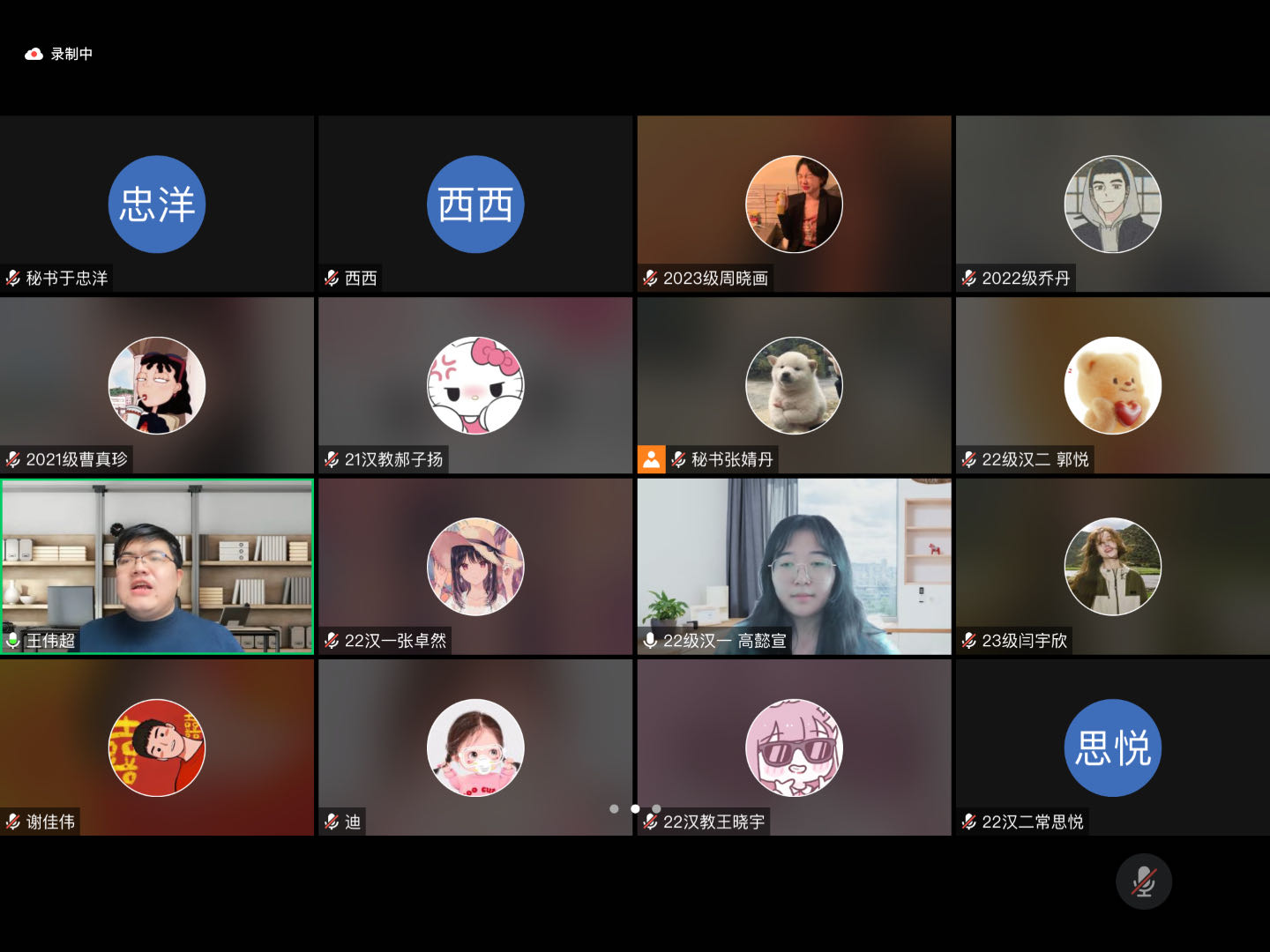 2月18日的活动主要为学术论文(读书报告)的汇报与点评及营员研讨。活动按学科分为四组,分别是中国古代文学组、中国现当代文学组、外国文学组和语言学、文字学组,共57名学生做了线上汇报。我院教师李杉婵、孙静、马奥远、刘婕分别担任各学科组长,组织了各组的论文(读书报告)汇报评议与营员研讨活动。
