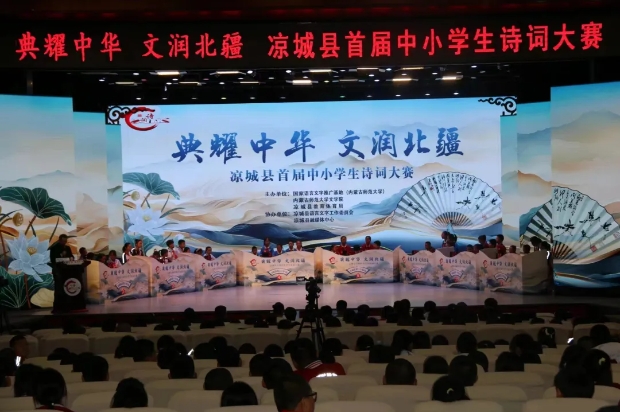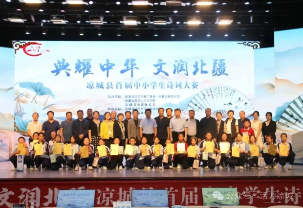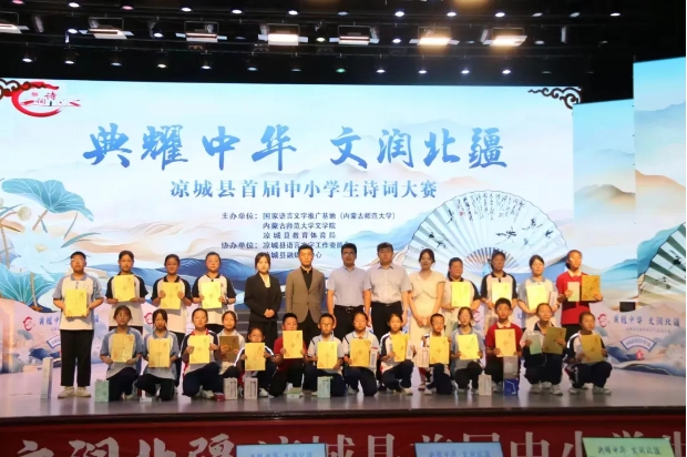 5月31日,国家语言文字推广基地(永利官网)、凉城县教体局在县影剧院联合举办以“典耀中华,文润北疆”为主题的首届中小学生诗词大赛。来自全县7所中小学校的14支队伍(小学组8支、初中组6支)70名选手分别参加小学组和中学组的比赛。国家语言文字推广基地(永利官网)常务副主任陆有富教授出席并致辞,凉城县人大常委会副主任陈瑞娥、凉城县政协副主席池勇参加。