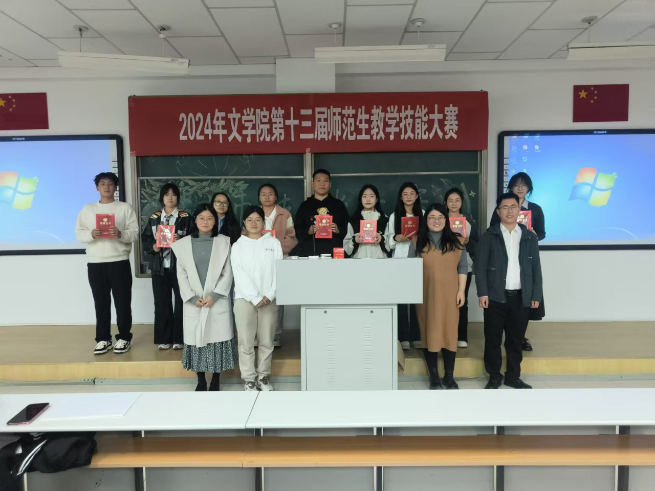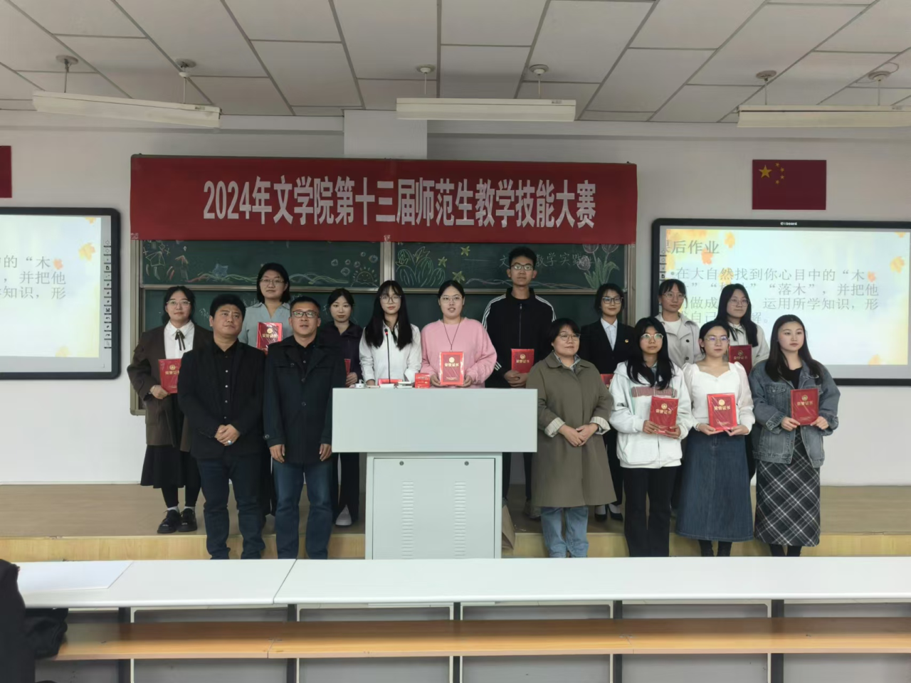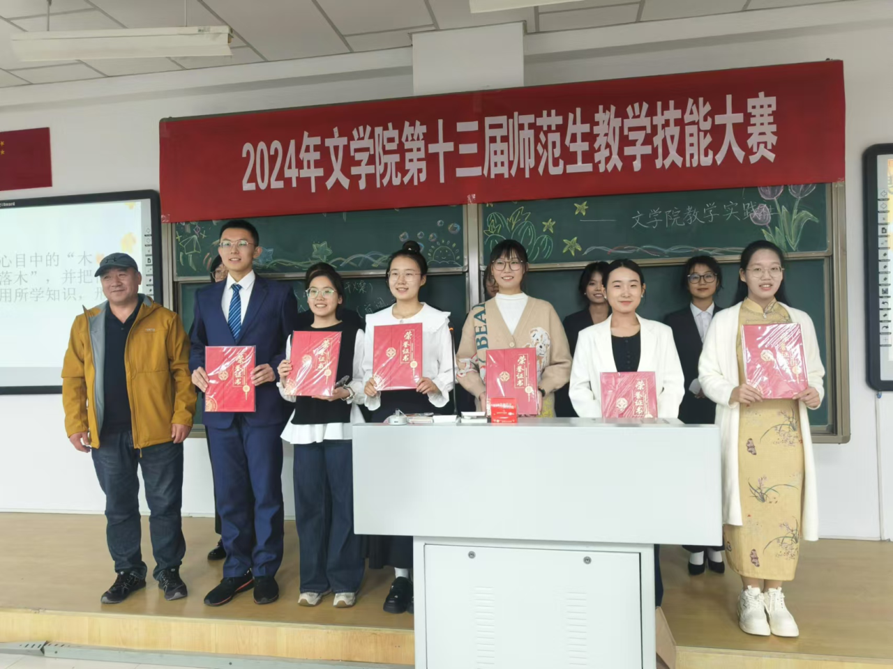 为进一步深化教师教育改革,构建以赛促练、赛练结合的师范生教学技能训练模式,切实提升我院学生的教学基本功与教学技能,根据学院《关于举办第十三届师范生教学技能大赛的通知》相关安排,我院于10月12日隆重举办了第十三届师范生教学技能大赛。大赛特邀学院资深语文教育专家毛润民老师担任评委会主任,汉语言文学系主任李瑞春、汉语国际教育系主任胡素莲、秘书学系主任高永强、人文教育与实践教学中心主任赵玉龙,青年教师张丽娟、常雪纯、王雪老师担任大赛评委。本次大赛分为班级初赛和院级复赛,通过层层选拔,最终经各班级初赛,有27名选手参加了院级比赛。