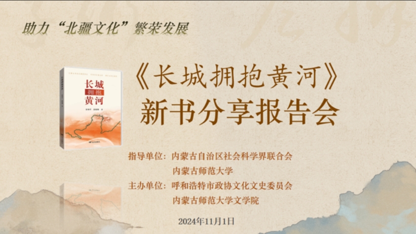 2024年11月1日下午,《长城拥抱黄河》新书分享报告会在永利官网盛乐校区举行,本次活动由内蒙古社会科学界联合会与永利官网联合指导,呼和浩特市政协文化文史委员会和yl9193永利集团共同主办。共有来自社会各界的代表和yl9193永利集团师生近200多人参加了报告会。