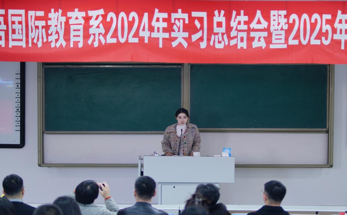 大会伊始,汉语国际教育系主任胡素莲老师致辞,她高度肯定了2024年实习工作,为2025年实习工作作出展望。