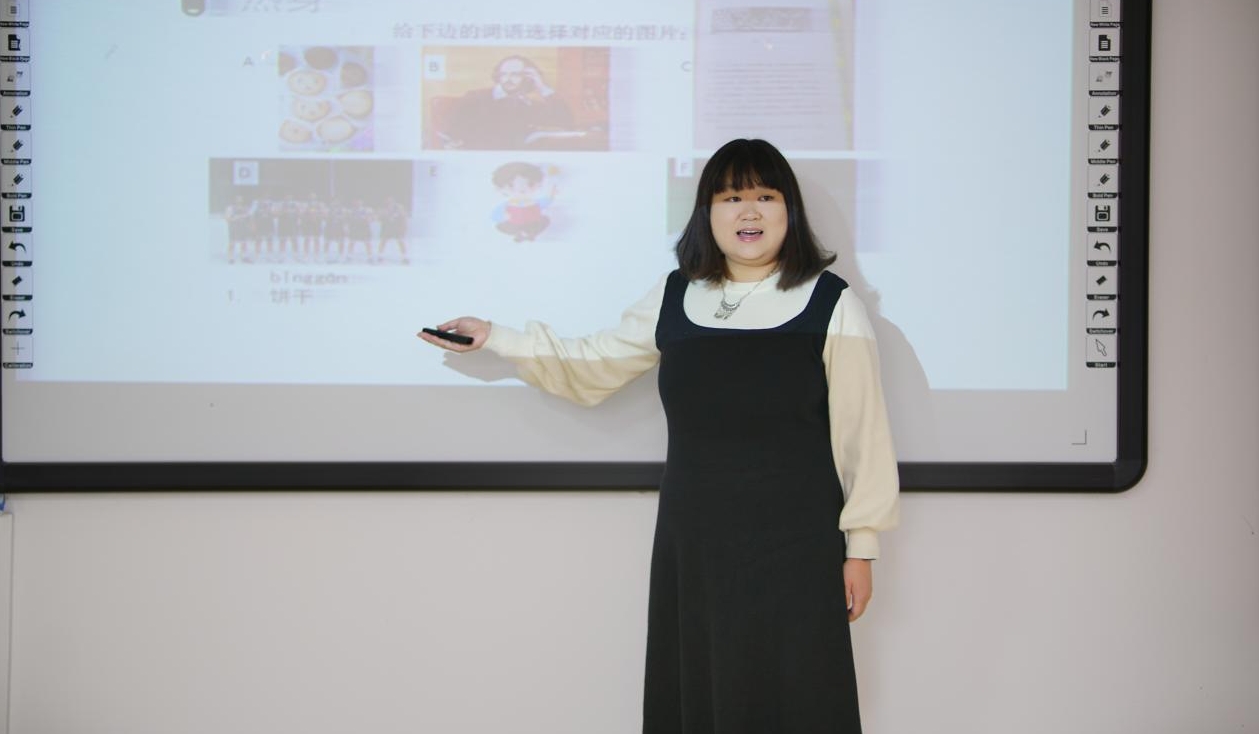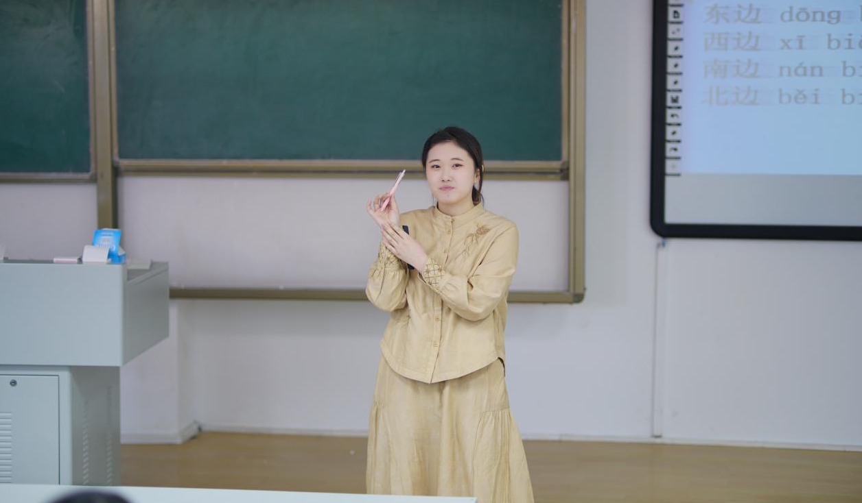 与此同时,罗佳雨、张祯淇、魏佳欣带来生动有趣的示范课。她们借助教具,展示了充实且富有吸引力的课堂教学,体现了“4468”教学技能训练模式的成效。