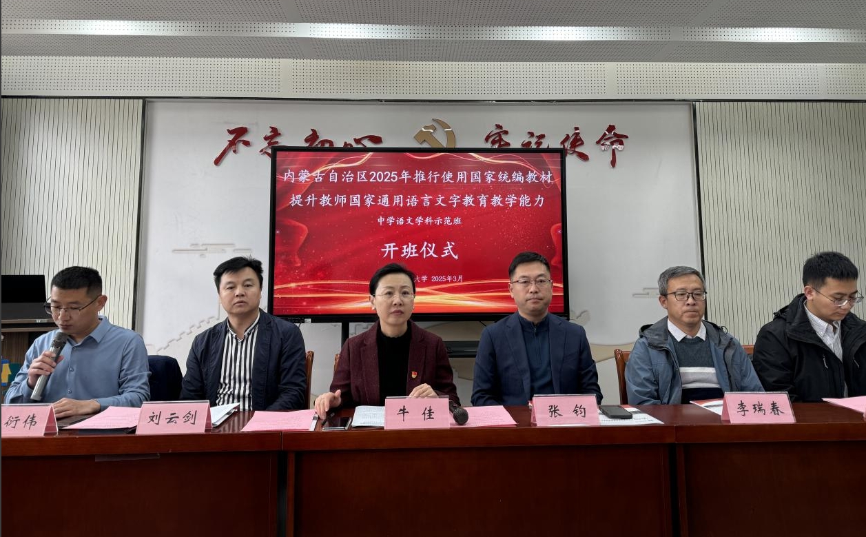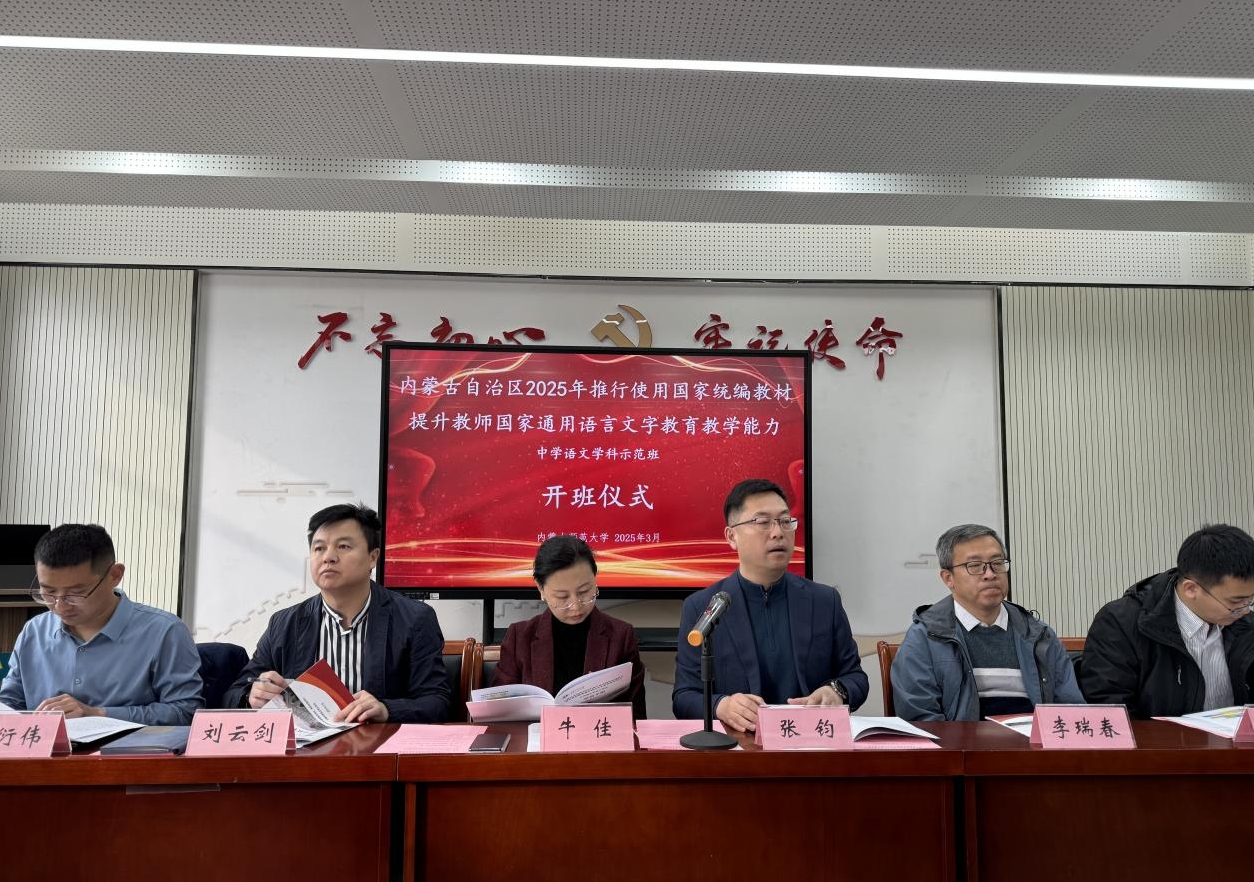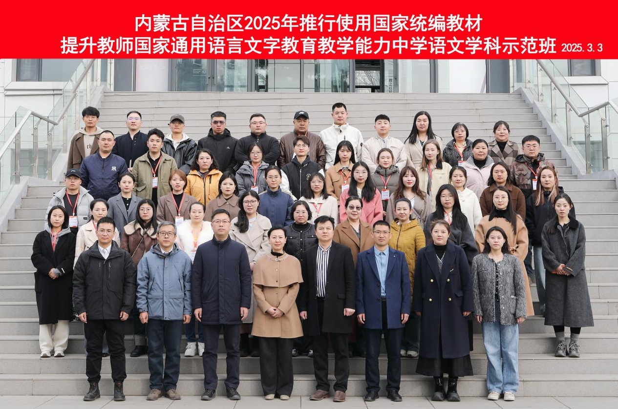 2025年3月3日,yl9193永利集团和继续教育学院共同承担的内蒙古自治区2025年推行使用国家统编教材、提升教师国家通用语言文字教育教学能力中学语文学科示范班举行开班仪式,yl9193永利集团副院长张钧、汉语言文学系主任李瑞春、培训教师代表谢佳伟、继续教育学院相关领导及44位中学语文教师骨干出席。