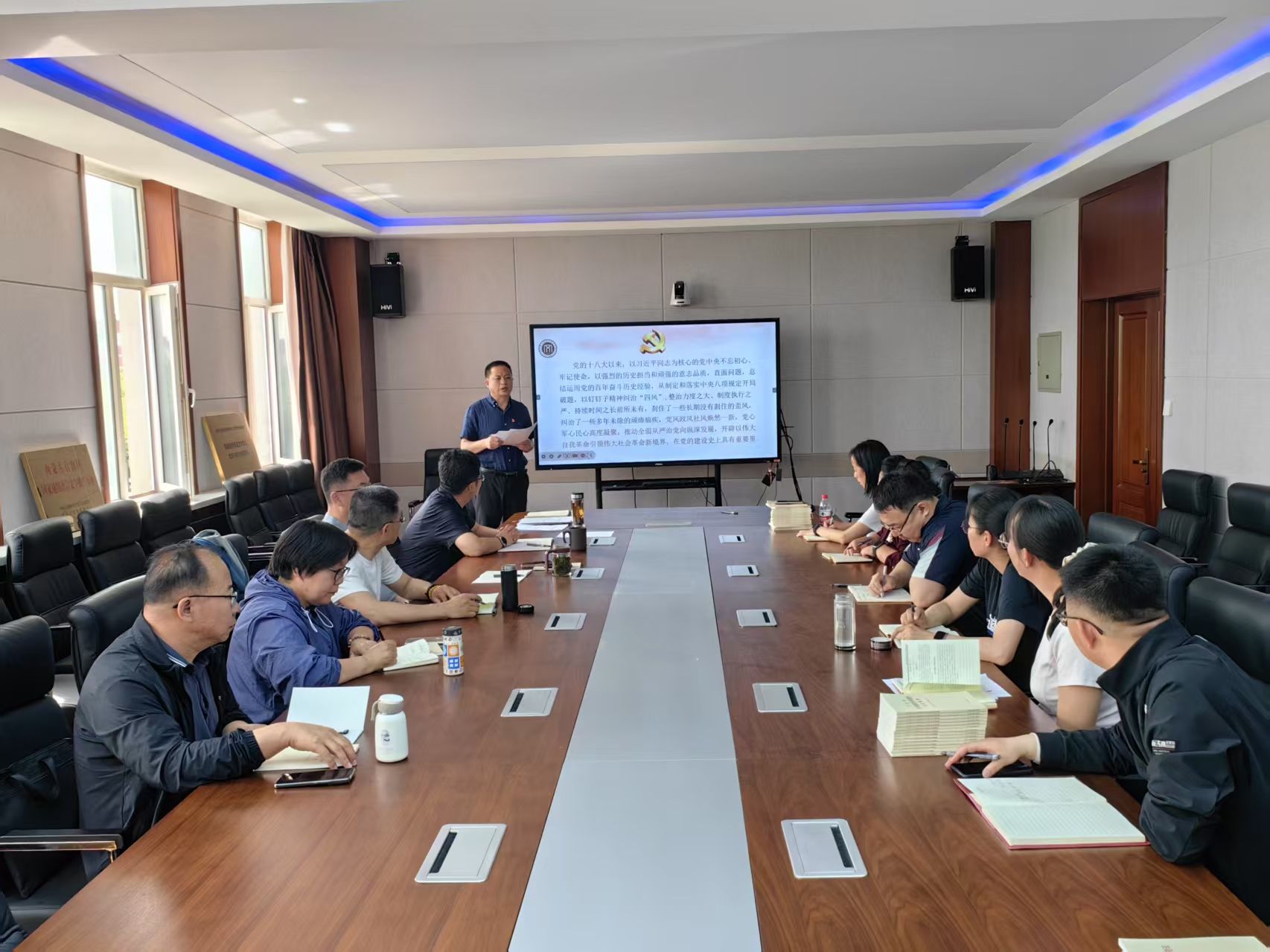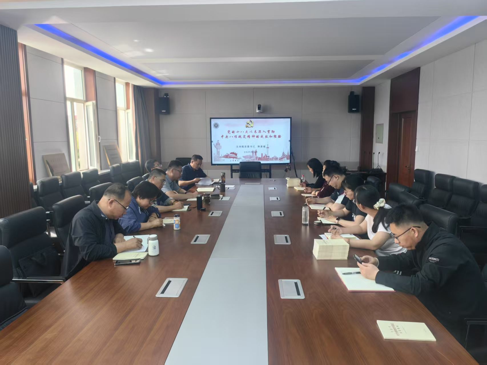 会上,首先由韩彦斌围绕《党的十八大以来深入贯彻中央八项规定精神的成效和经验》讲党课。党课从举旗定向、领航掌舵,习近平总书记关于深入贯彻中央八项规定精神的重要论述生动彰显我们党的强大真理力量和强大人格力量;党中央带头、全党行动,有力有序深入贯彻中央八项规定精神;一子落地、满盘皆活,以作风建设新成效赢得人民群众信任拥护;在实践中总结、从总结中提升,积累的经验弥足珍贵四个方面讲解了党的十八大以来深入贯彻中央八项规定精神的成效和经验。