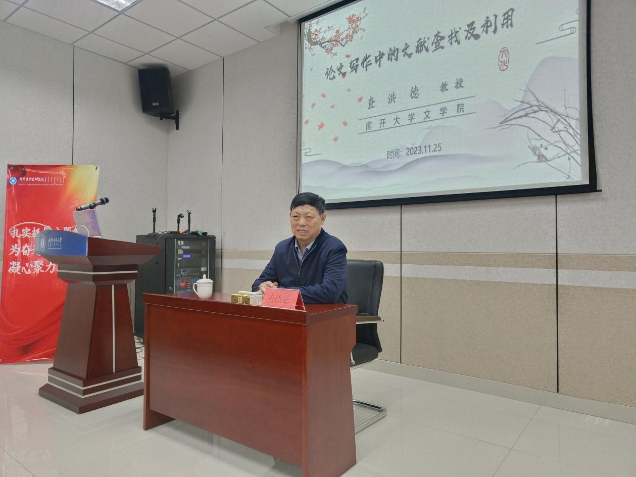 2023年11月25日下午,教育部长江学者特聘教授、南开大学yl9193永利集团博士生导师查洪德教授为我院师生作了题为“论文写作中的文献查找及利用”的讲座。讲座由yl9193永利集团院长陆有富教授主持,我院各专业博硕士60余人聆听了讲座。