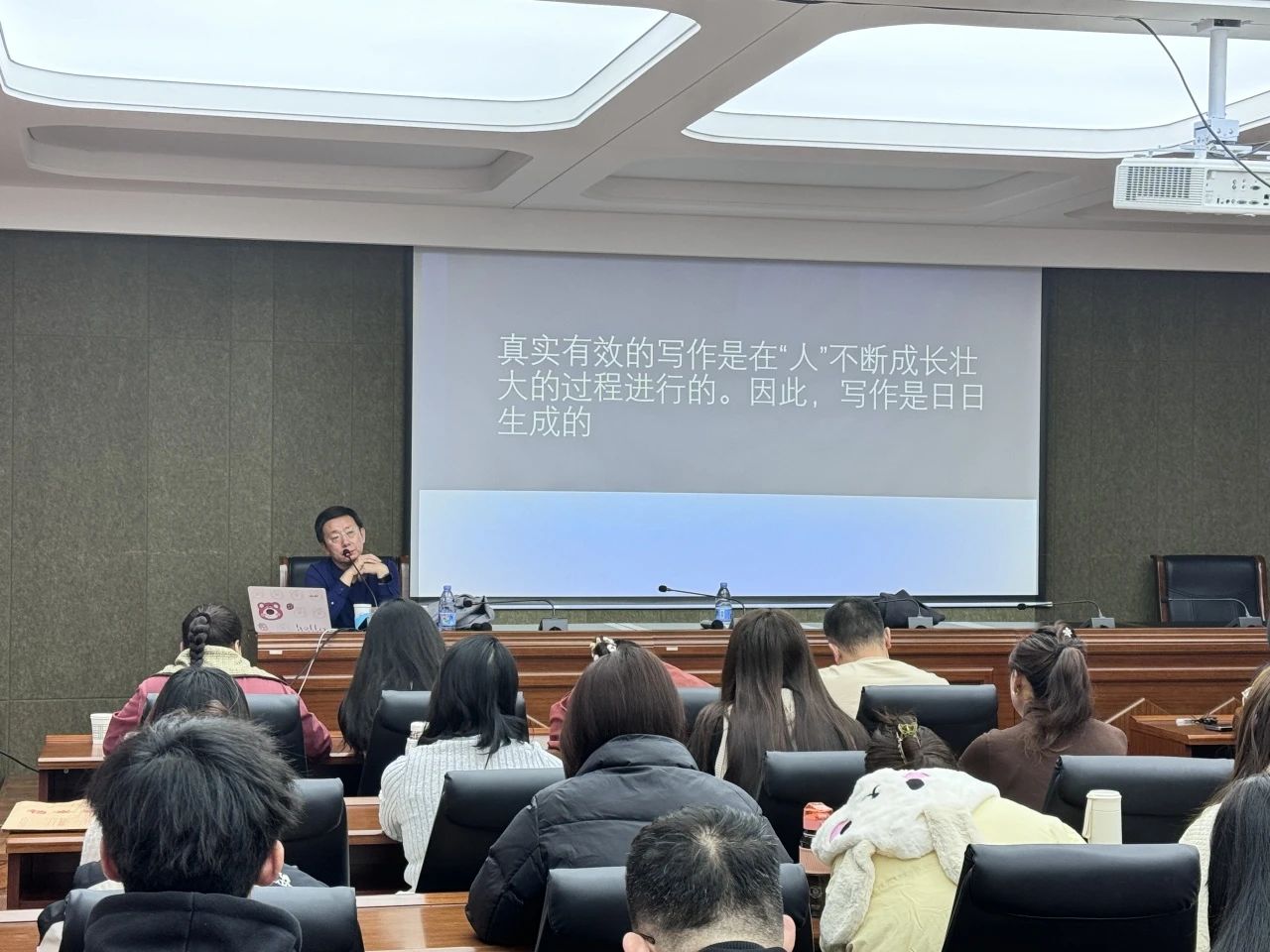 2024年11月23日上午,北京市特级教师,中国语文报刊协会写作教学专业委员会副理事长,中国教育学会“领航计划”专家连中国老师,为我院师生作了题为“写作:人的完整即文的完整”的讲座。讲座由陆有富教授主持,相关专业教师和研究生聆听了讲座。