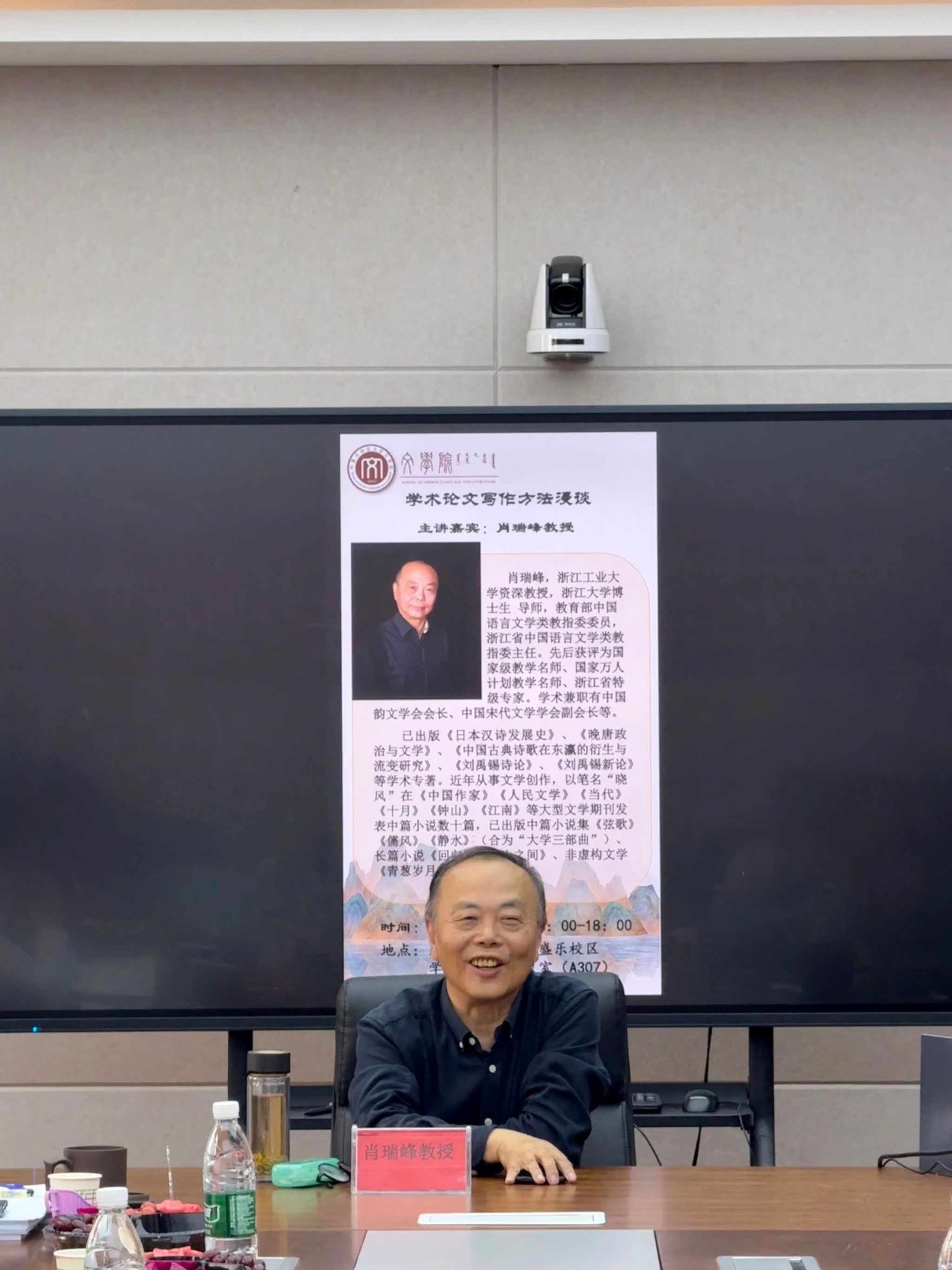 2025年5月23日下午,浙江工业大学资深教授、浙江大学博士生导师、教育部中国语言文学类教指委委员、浙江省中国语言文学类教指委主任肖瑞峰教授,应邀在盛乐校区学院楼yl9193永利集团会议室为我院师生带来一场精彩的学术讲座,题目是“学术论文写作方法漫谈”。讲座由yl9193永利集团陆有富院长主持,相关专业教师、yl9193永利集团硕士研究生参与了此次讲座。