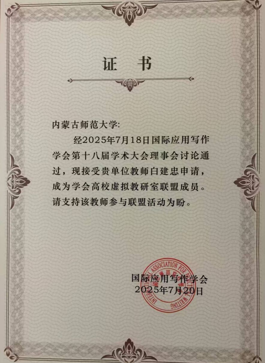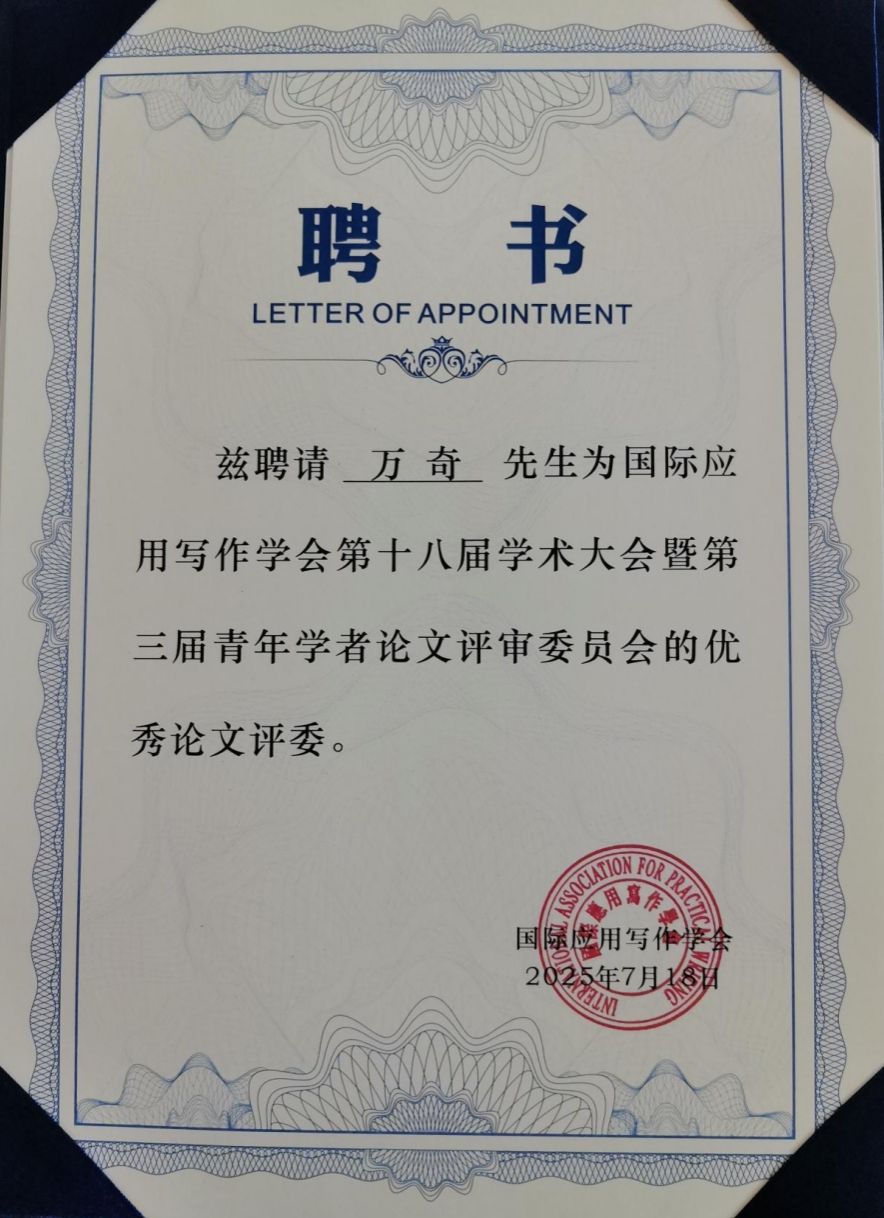 我院万奇教授、白建忠教授应邀参加了本次研讨会。万奇教授作为国际应用写作学会的副会长,作了题为《论礼仪文书写作课的教学之道与教学之术》的主题学术报告。万奇教授被聘为本次会议论文评审委员会的优秀评委,并且作为第四分会场的学术观察员,对本组的论文作了精彩的点评。白建忠教授在自由发言阶段作了题为《明代章奏之体的演变》的学术报告。在本次会议上,yl9193永利集团的写作教研室成为国际应用写作学会高校虚拟教研室联盟成员。