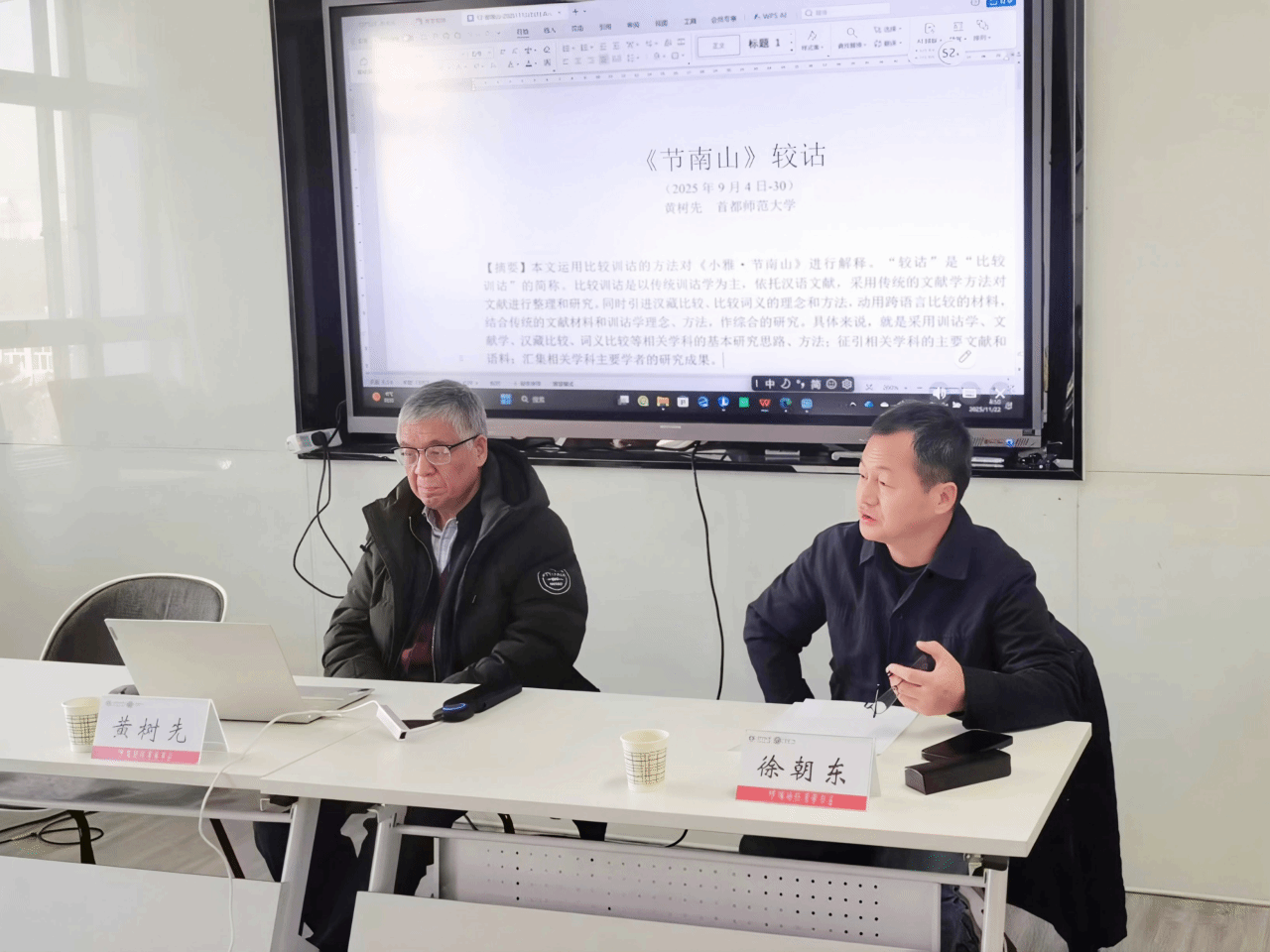 2025年11月21日上午,我院在赛罕校区文史楼432教室成功举办题为《〈节南山〉较诂》的学术讲座。本次讲座特别邀请首都师范大学yl9193永利集团黄树先教授主讲,yl9193永利集团兼职教授徐朝东主持,50余名硕博士研究生到场聆听。